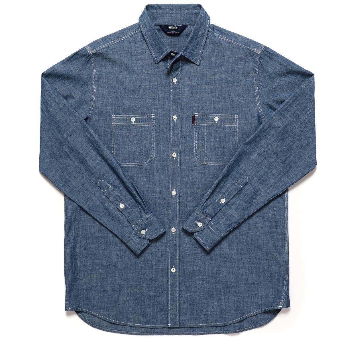 Uzun kollu gömlek; rahat ve günlük görünüm için çift renkli iplikle sıkı dokunmuş, pamuklu kumaştan üretilmiştir. Güçlendirilmiş kontrast dikişlere, iş hayatından ilham alan iki klasik ön göğüs cebine, koltuk altı havalandırma deliklerine ve deniz kuvvetlerinden ilham alan beyaz balık gözü düğmelerle tamamlanan ön düğme patına sahiptir.